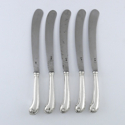5 zilveren pistoolmessen, 18e eeuw
